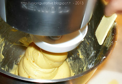 Per non appesantire il post, ho pubblicato il passo passo con foto su VISIONI GUSTATIVE,   qui preferisco soffermarmi su alcune considerazioni. Consiglio comunque di darvi un'occhiata,  si noterà come l'impasto rimanga costantemente incordato, anche durante l'inserimento dei grassi, condizione fondamentale perché la lavorazione non duri in eccesso, rischi di surriscaldarsi e spatasciarsi.